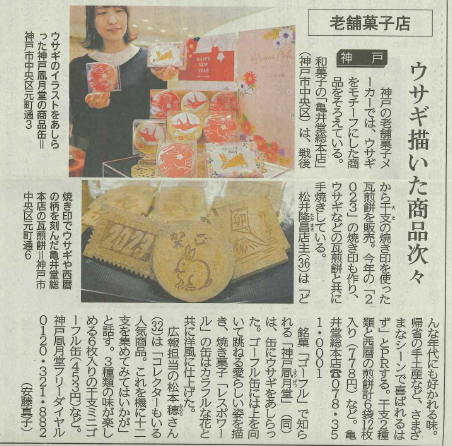 神戸新聞に掲載されました 2023.01.04 お知らせ このたび、亀井堂総本店の取り組み・商品について、神戸新聞にてご紹介いただきました。長年続けてきた瓦せんべいづくりへの想いや、地域に根ざした菓子舗としての歩みを取り上げていただいております。 日頃よりご愛顧いただいている皆さまのおかげで、このような形でご紹介いただけたことを、心より感謝申し上げます。これからも変わらぬ品質と、心に残るお菓子づくりに努めてまいります。 今後とも亀井堂総本店をよろしくお願いいたします。 次の記事へ »
